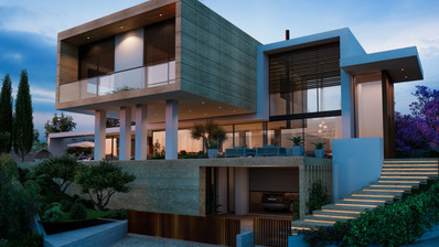A large, modern-design 4+1 bedroom villa, arranged on three floors on a hill in Armenohori with uninterrupted sea views.
