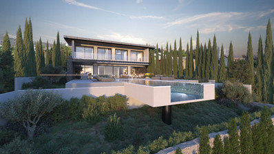 The villa consists of an open-plan living/ dining/ breakfast area, a separate kitchen, a laundry room and a guest WC with shower on the ground floor and 4 bedrooms all with en-suite bathrooms and the master with walk-in closet and a hot tub on the first floor. All the bedrooms have a balcony with sea views.