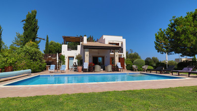 Located in a quiet cul-de-sac on the exclusive Eastern plateau of the Aphrodite Hills Resort, the entire property is surrounded by lush mature gardens with beautiful olive trees, cypresses, pine trees, a fruit garden and tall bay-leaf hedges to ensure complete privacy.