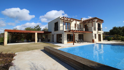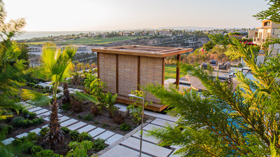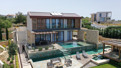 Villa Bali commands an idyllic clifftop position in Aphrodite Hills Resorts prime and most sought after front-line location. Perched 150 metres above sea level, the villa has uninterrupted and sweeping birds eye views over the sparkling Mediterranean Sea and the rugged coastline towards Paphos.