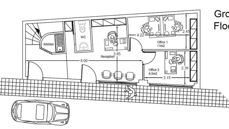 A unique opportunity for your business is available for rent in a prime central location, suitable for professional use such as a retail shop, offices, showroom, or other business activities.