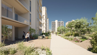 A well-proportioned one-bedroom apartment located on an upper floor, offering a comfortable open-plan living and kitchen area, a spacious bedroom, and a covered veranda suitable for everyday indoor–outdoor living.